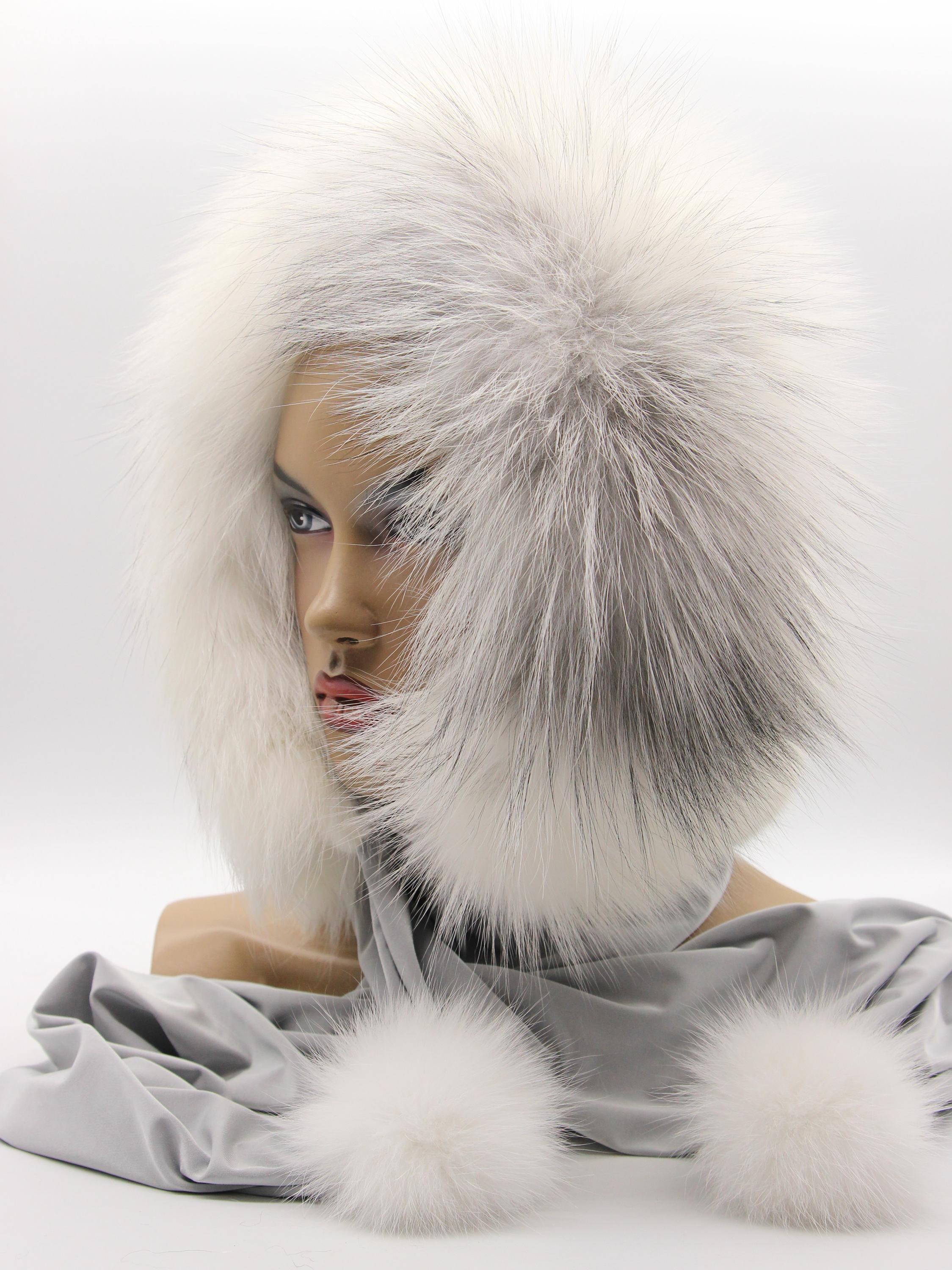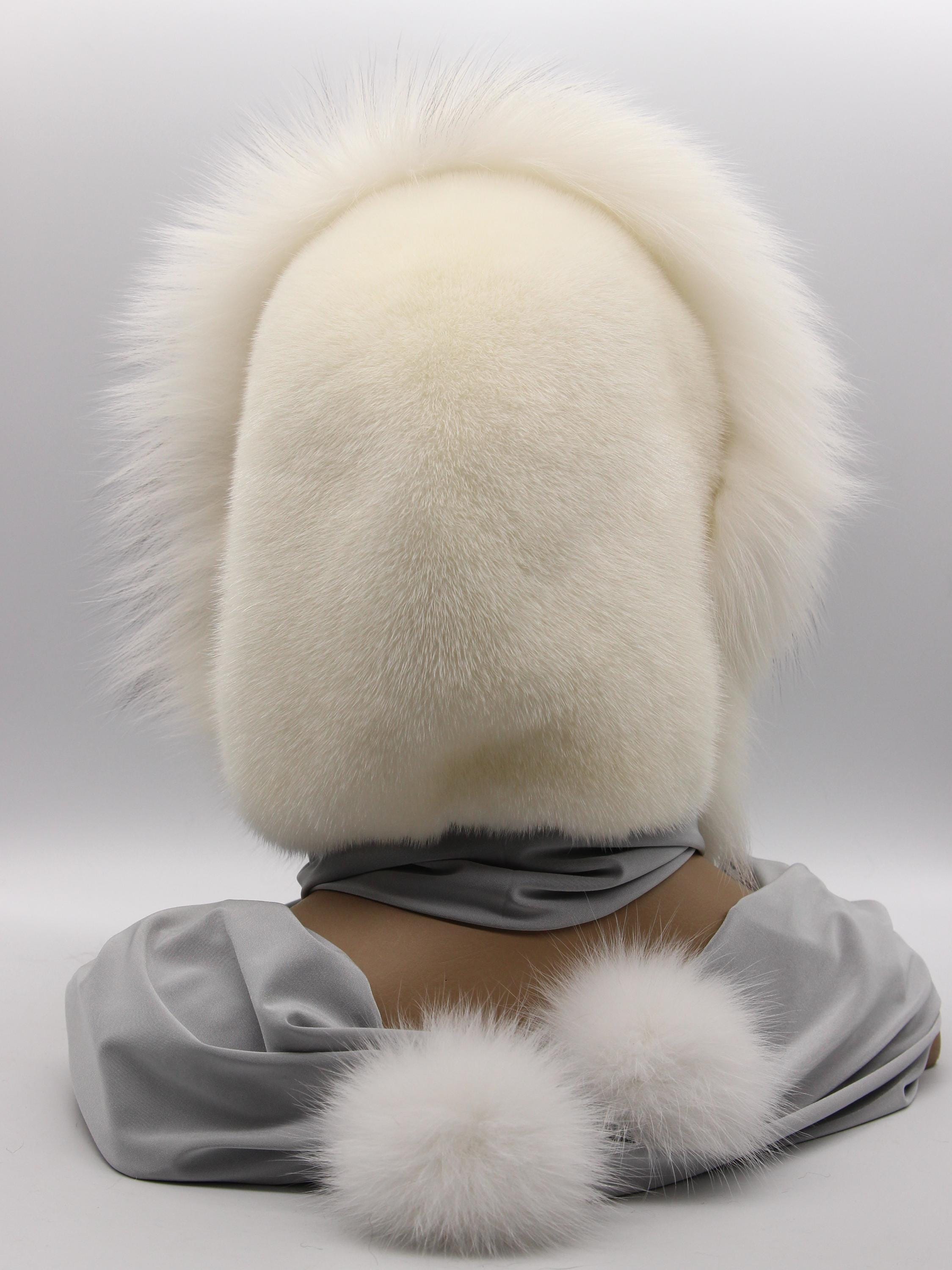 Most fur accessories do one thing - hat warms head, scarf wraps neck, hood covers both awkwardly. This construction combines white mink crown, arctic fox face frame, fabric body transitioning into scarf ends with pom poms. Genuinely different from standard fur accessories people have seen everywhere.