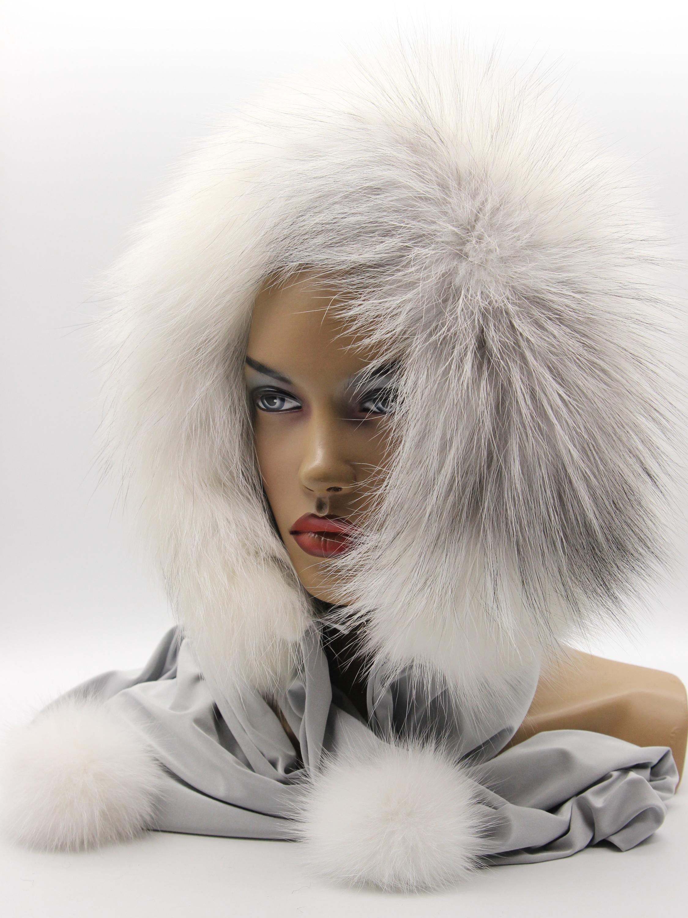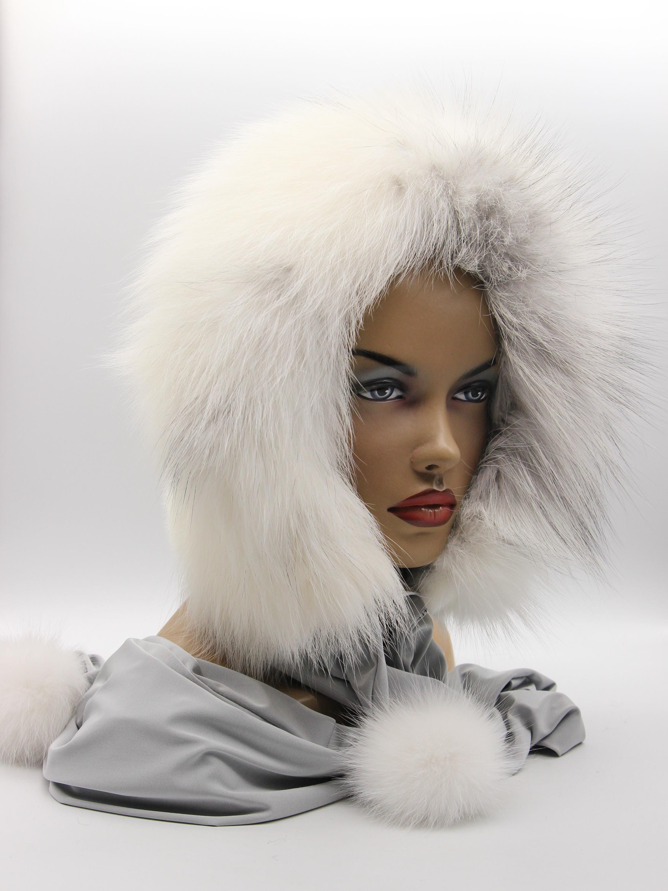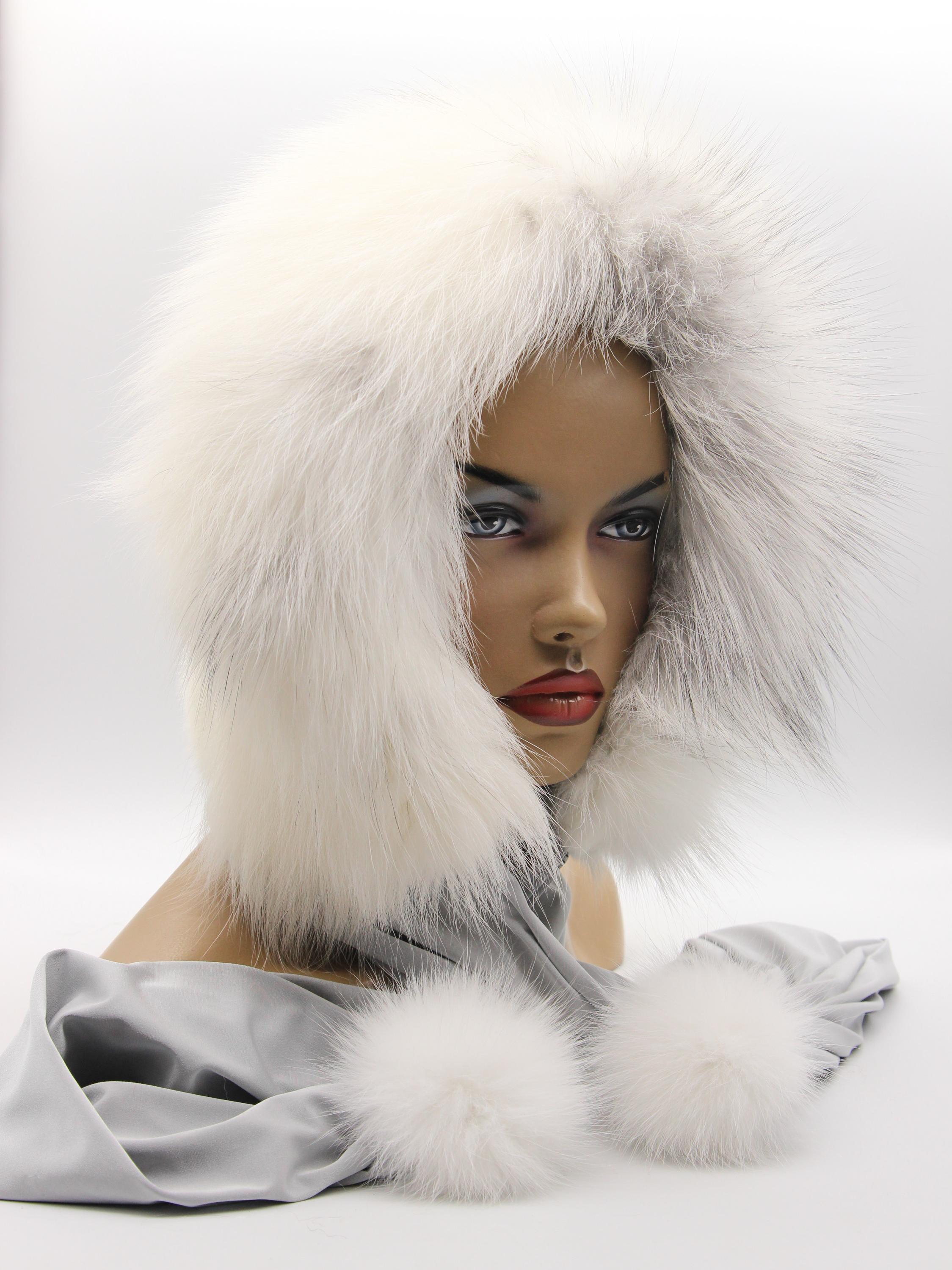 White Mink Arctic Fox Fur Hood: Three Pieces Functioning As One