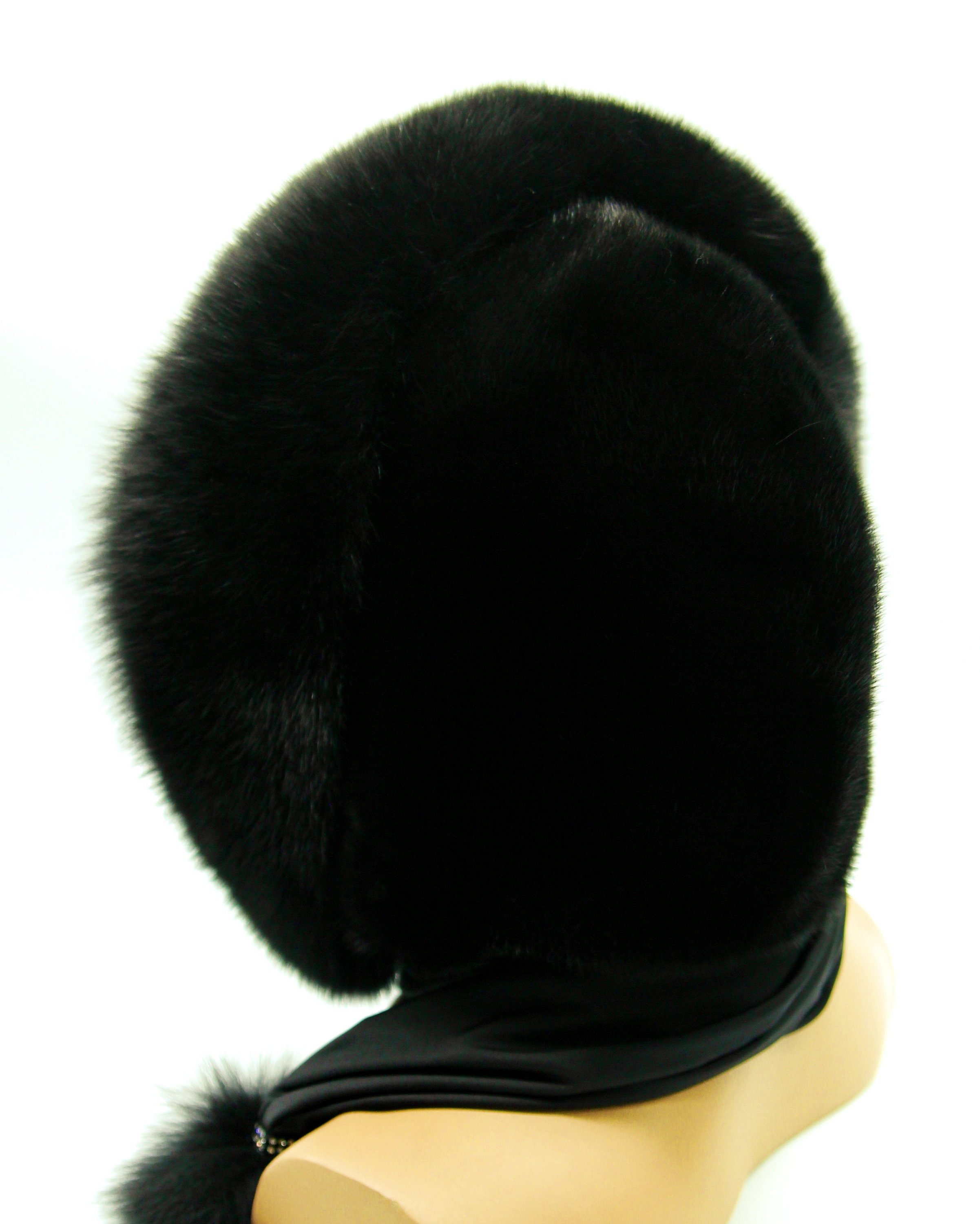 The sumptuous black color of this winter women's scarf enhances your winter attire, making it an exquisite addition to your winter collection. Its plush texture keeps you snug and warm while adding a touch of opulence to your outfit. This real cowl mink hat features a stunning contrast between the rich black mink fur and the soft fox fur, providing a visual feast for the eyes.