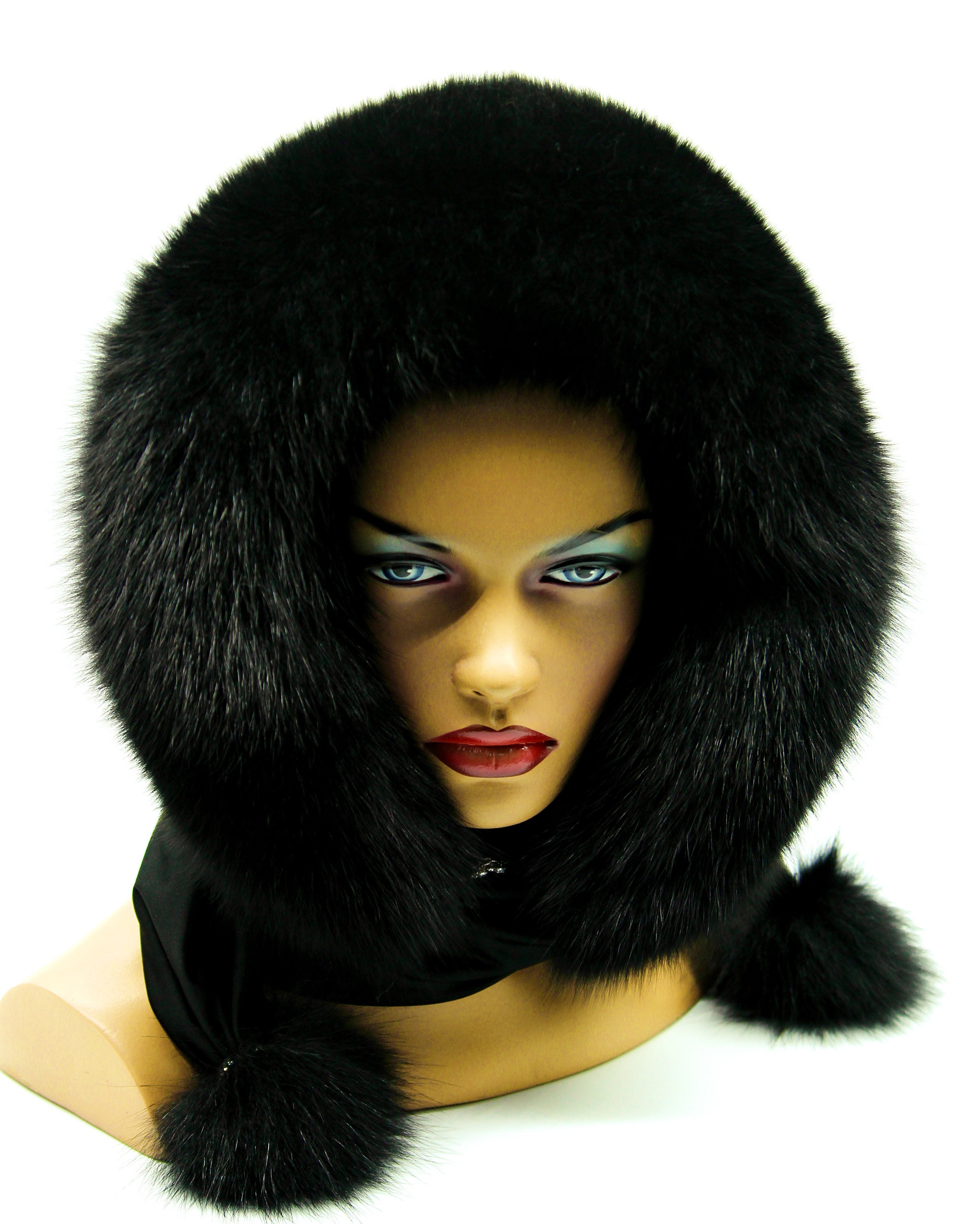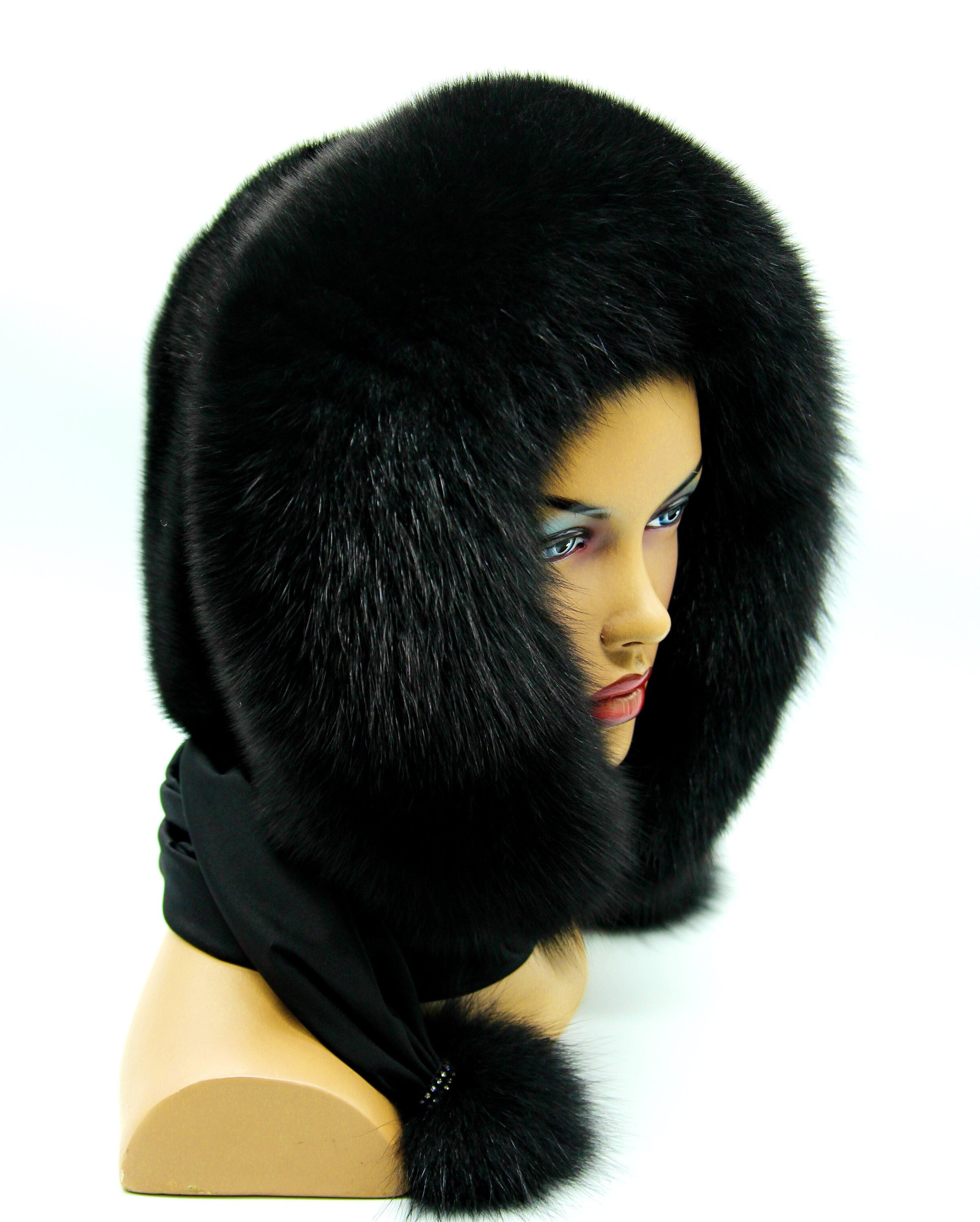 Black Mink Fur Hood Scarf: Winter Fox Fur Cowl