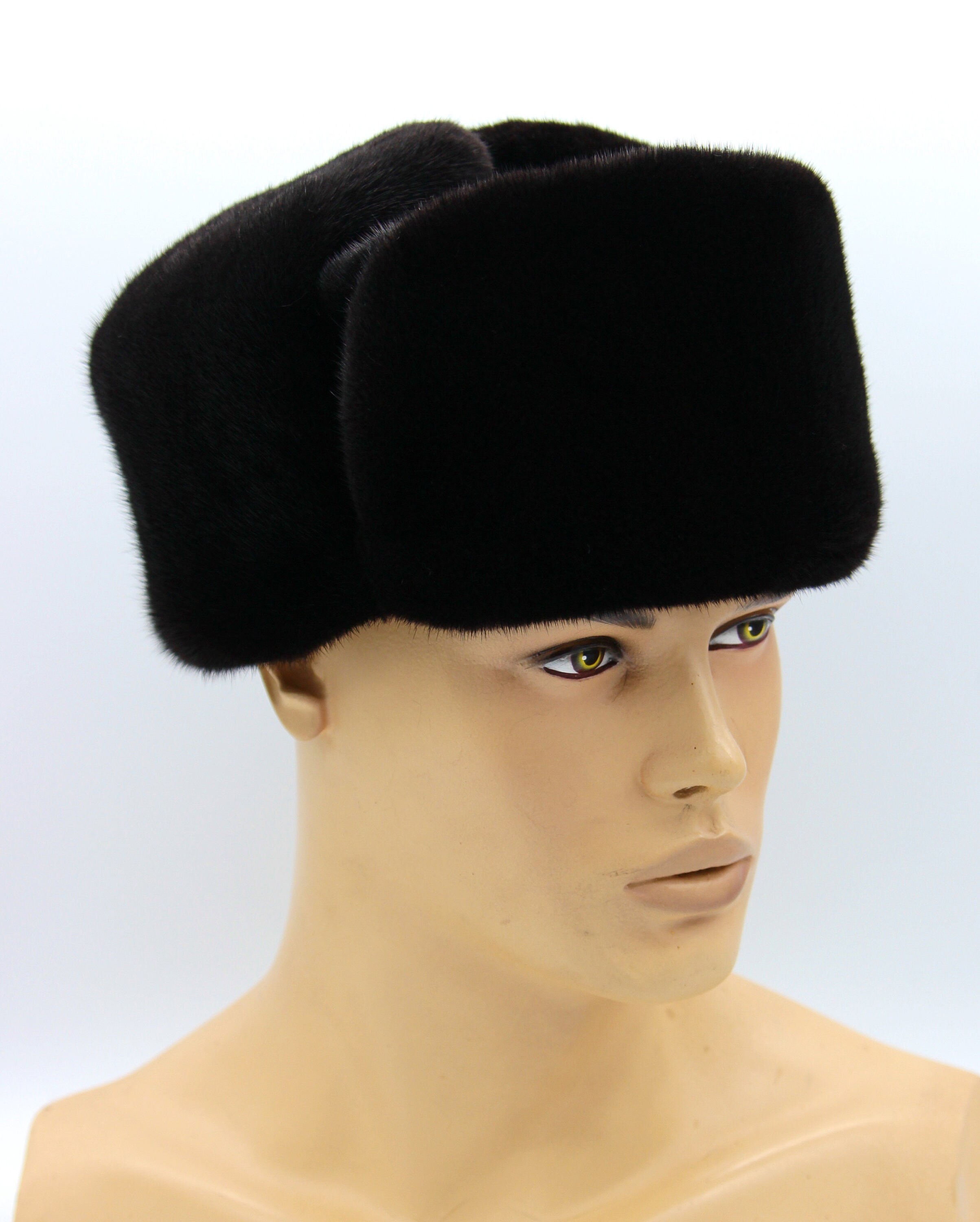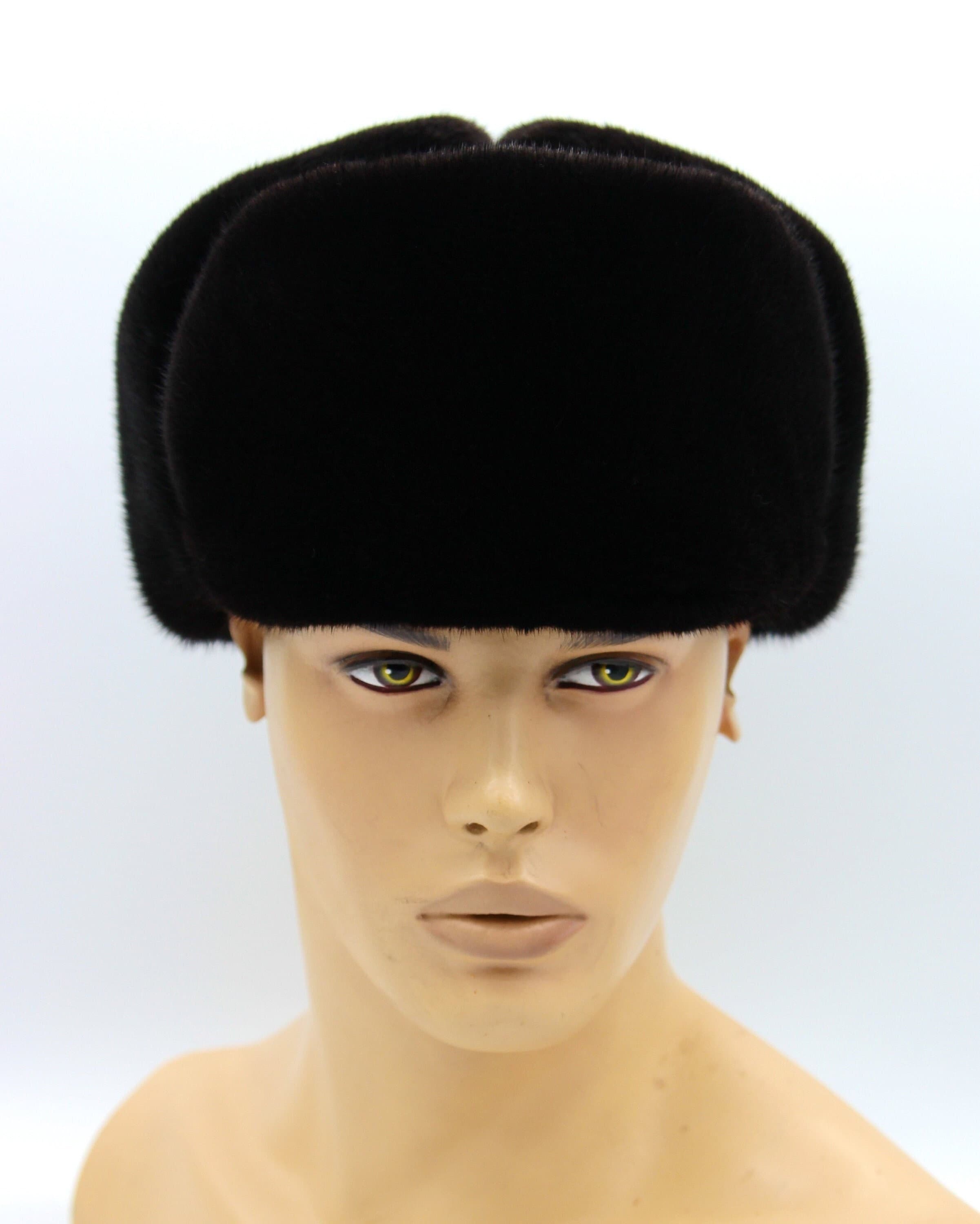 Black Mink Fur Ushanka Hat for Men - Premium Full Fur Handmade Ukrainian Winter Classic