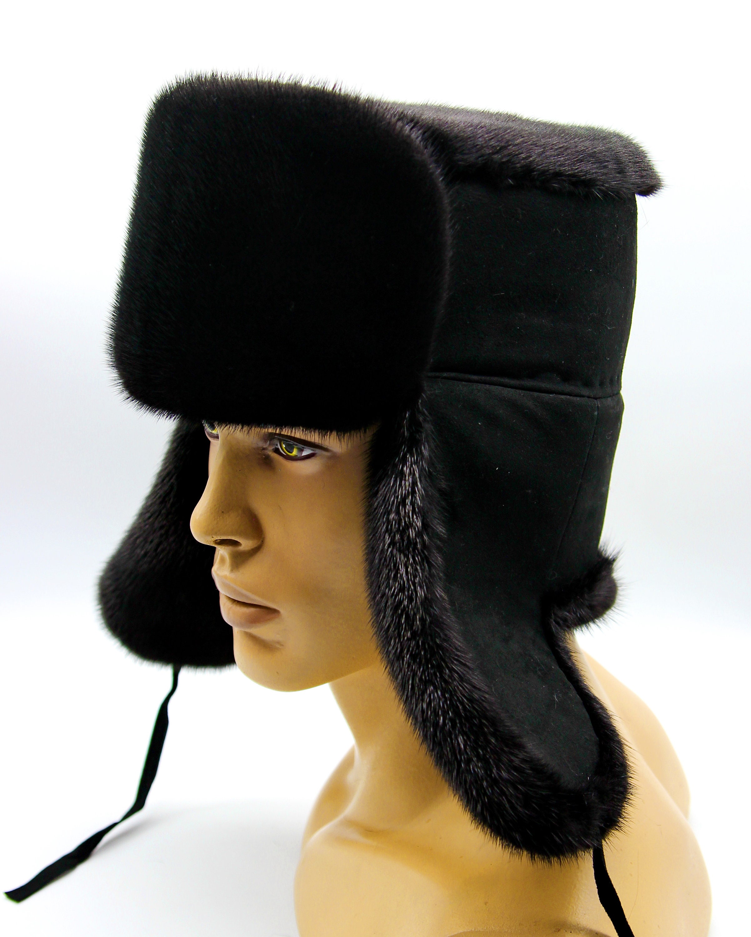 Black Suede Mink Fur Ushanka