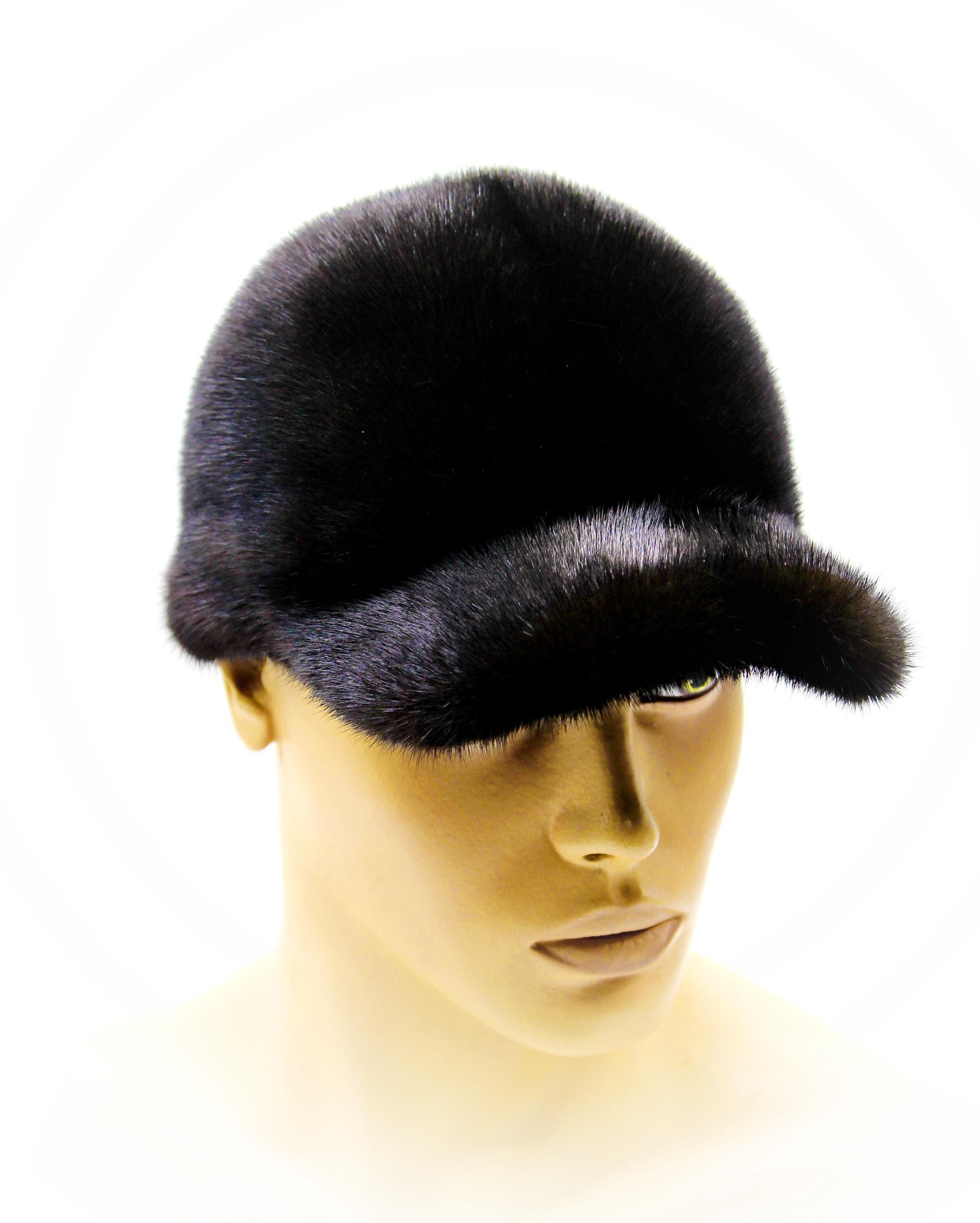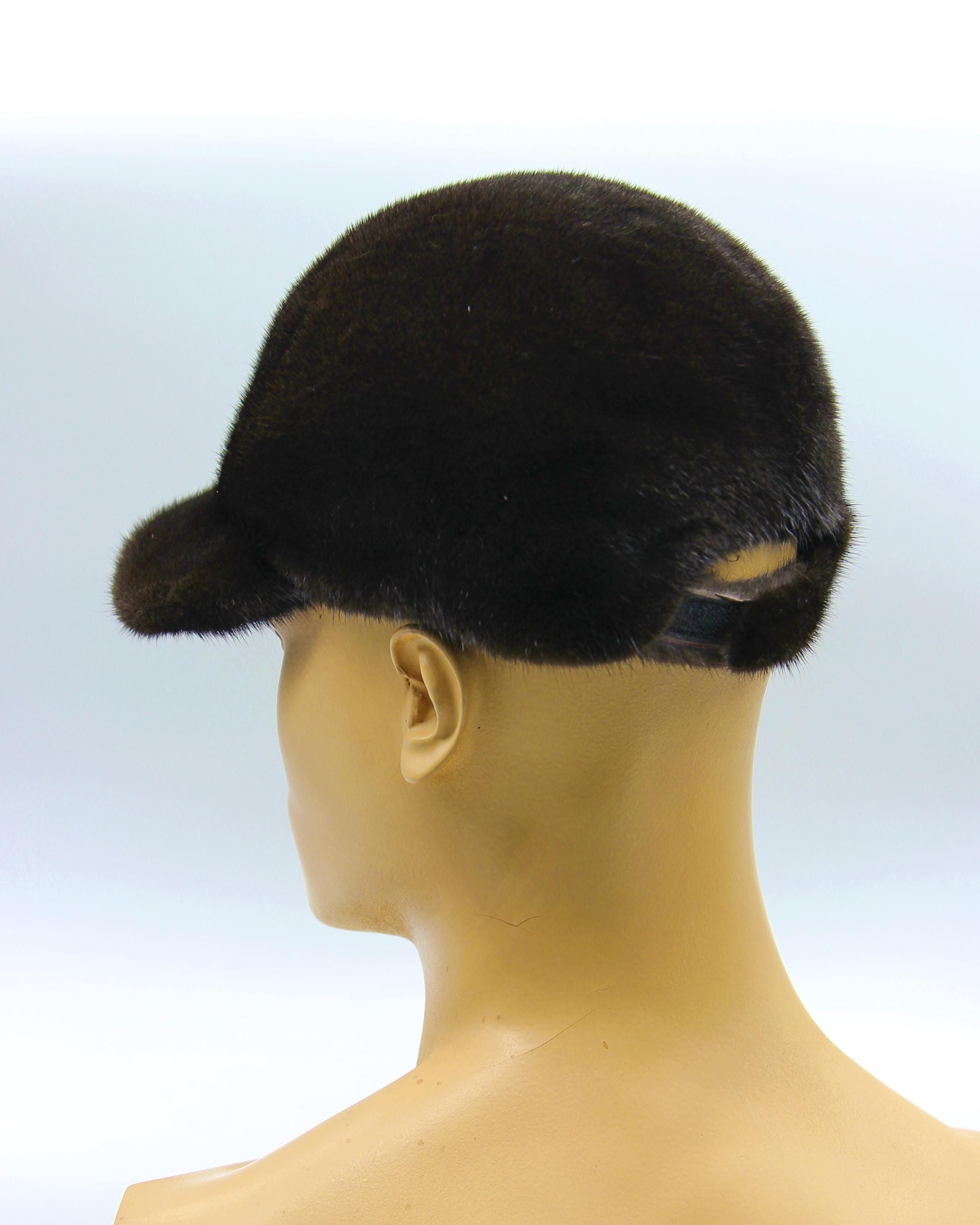 Premium Black Mink Fur Baseball Cap - Classic Luxury Men's Winter Headwear