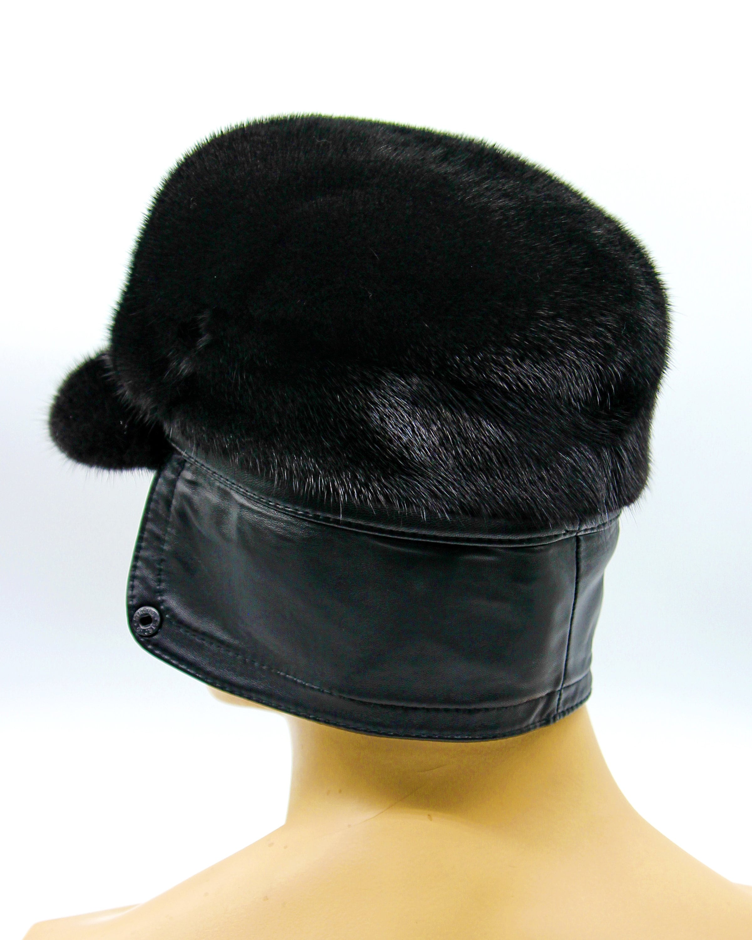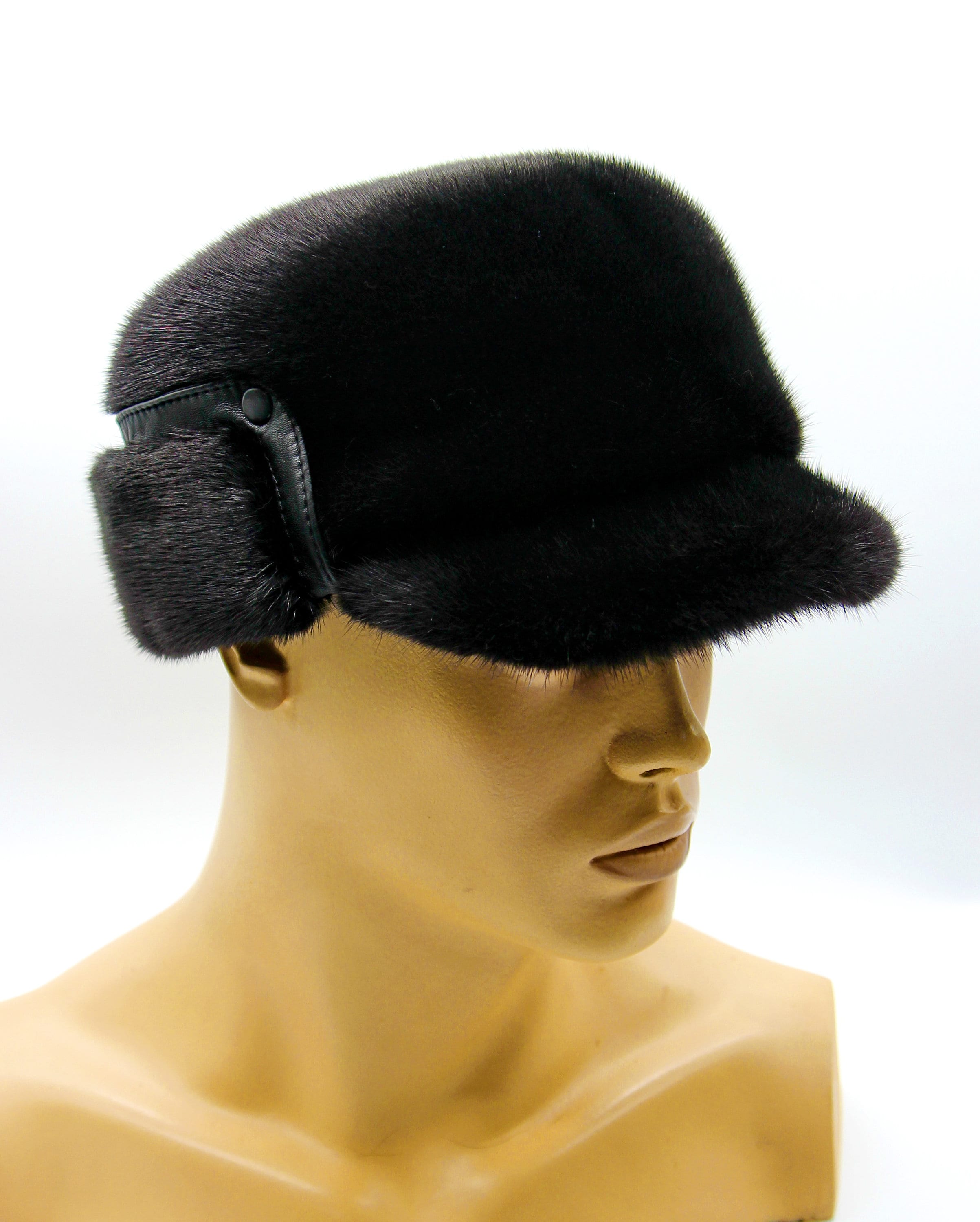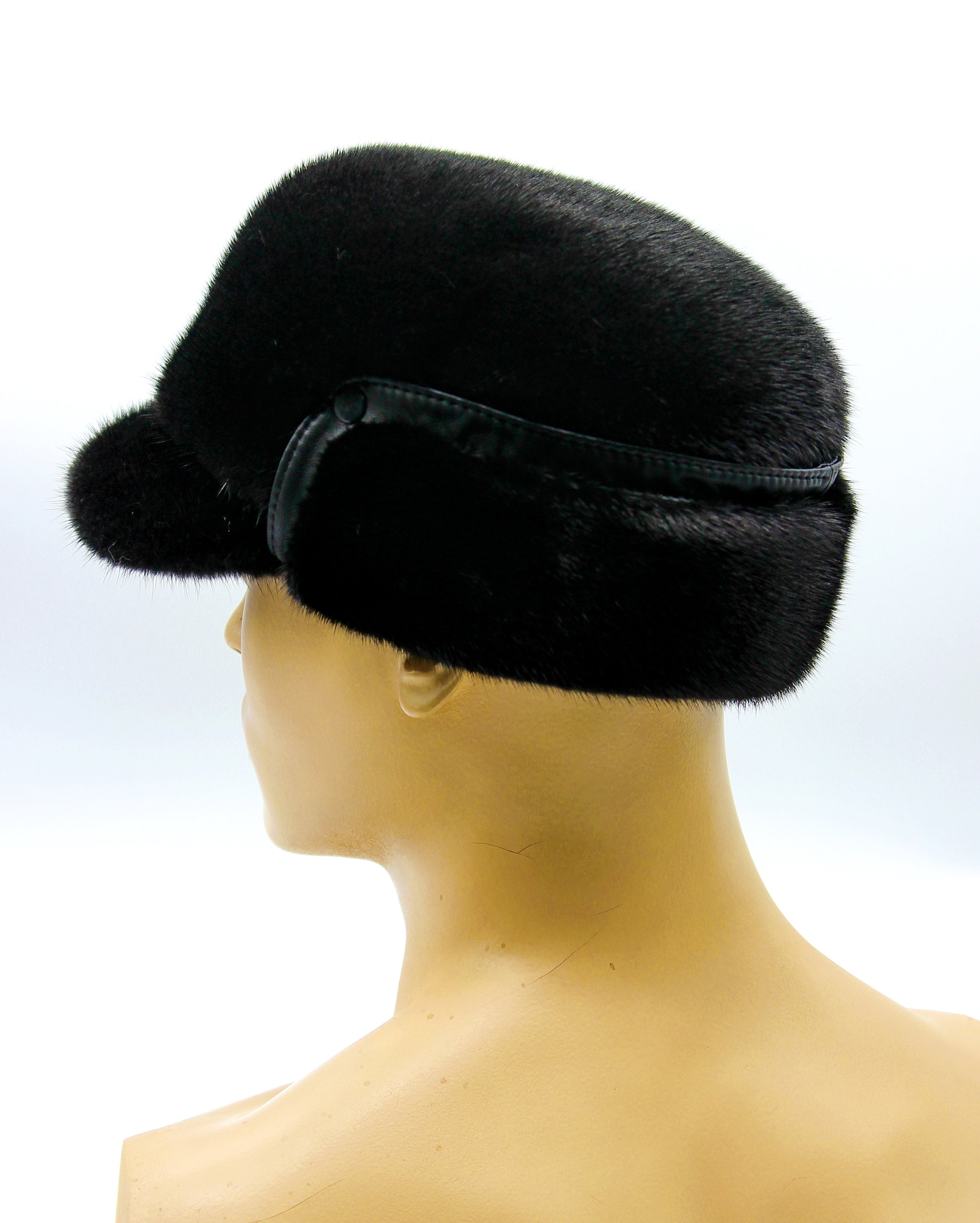 This black mink fur winter cap isn't just military styling - it's got working ear flaps for when you actually need them.