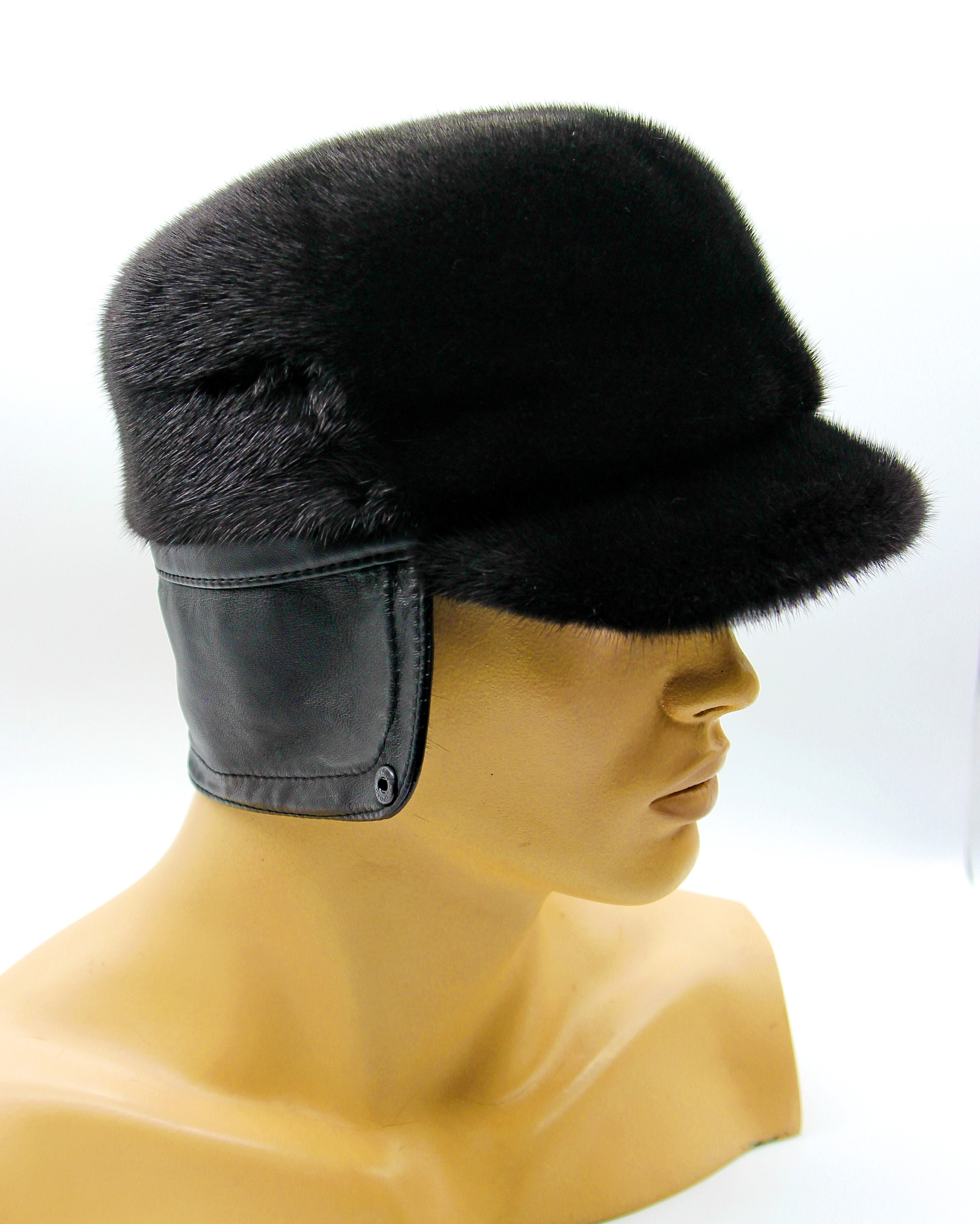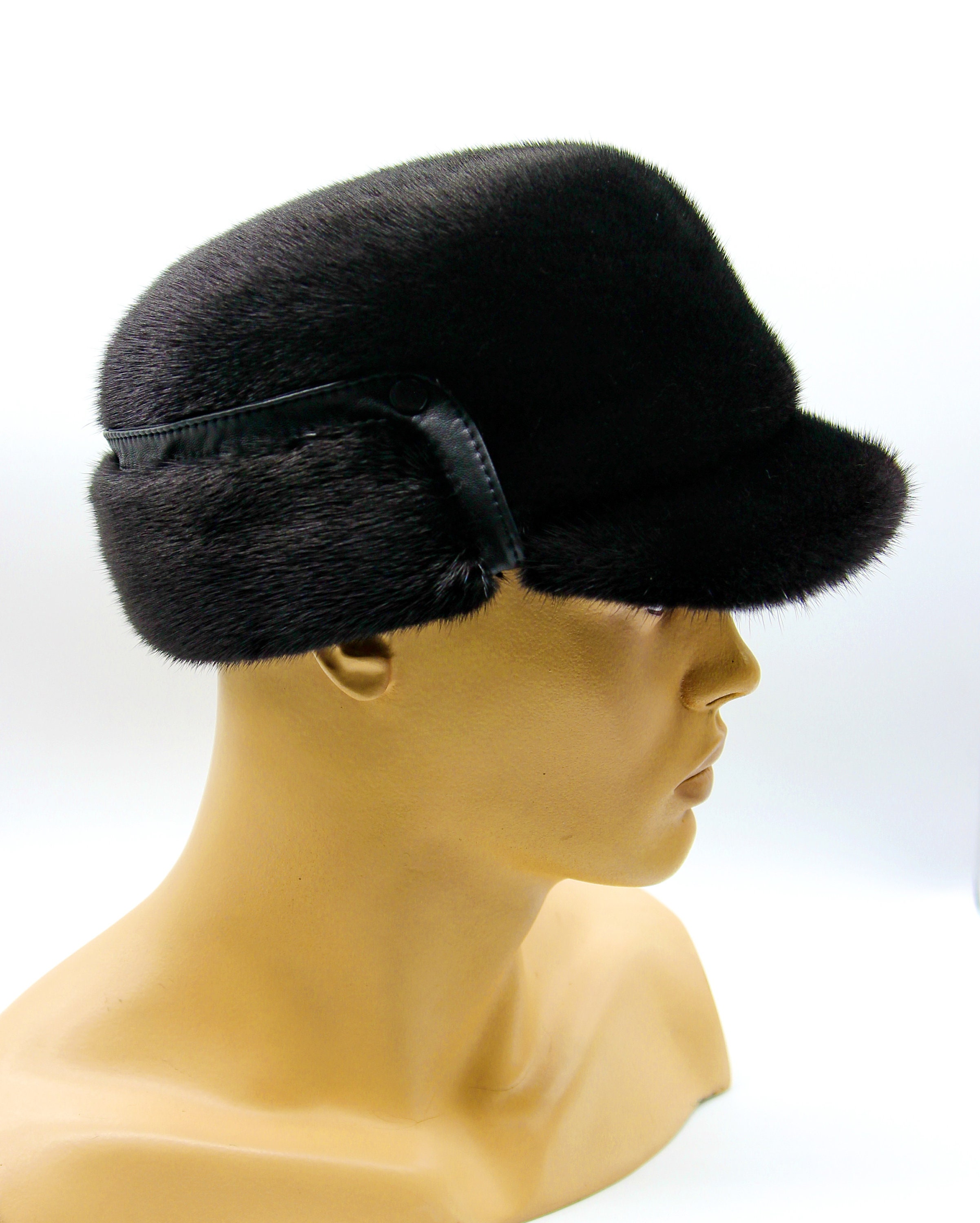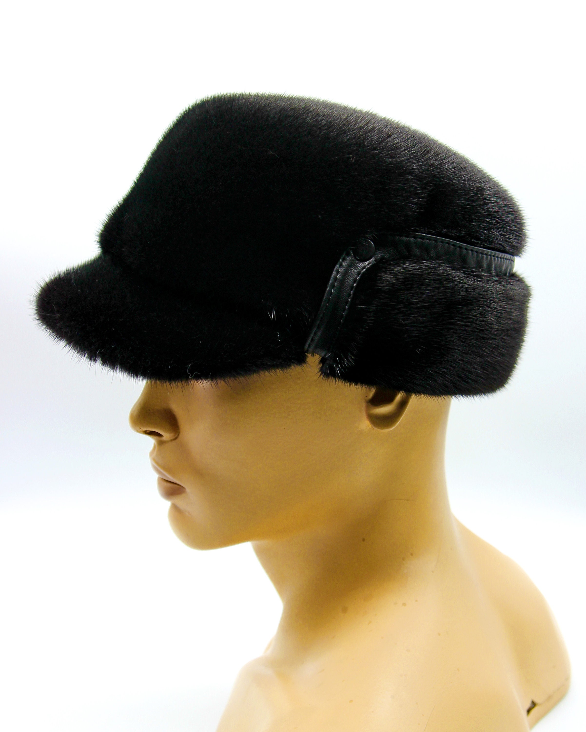 This black mink fur winter cap isn't just military styling - it's got working ear flaps for when you actually need them.