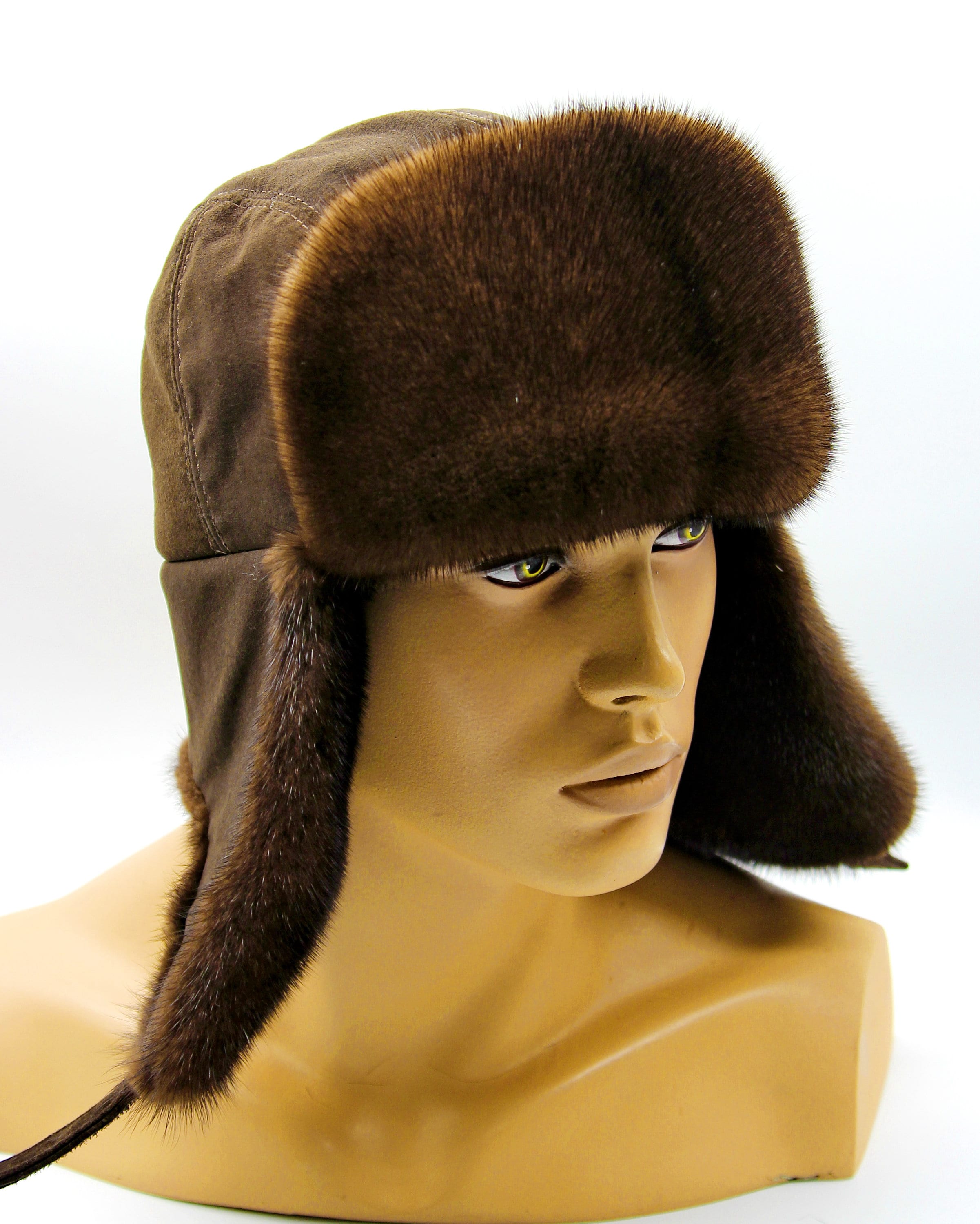 This pastel brown mink fur suede ushanka hat mens youth modern came about randomly. Customer called asking about lighter browns. Wasn't planning new color variations but kept getting similar requests.