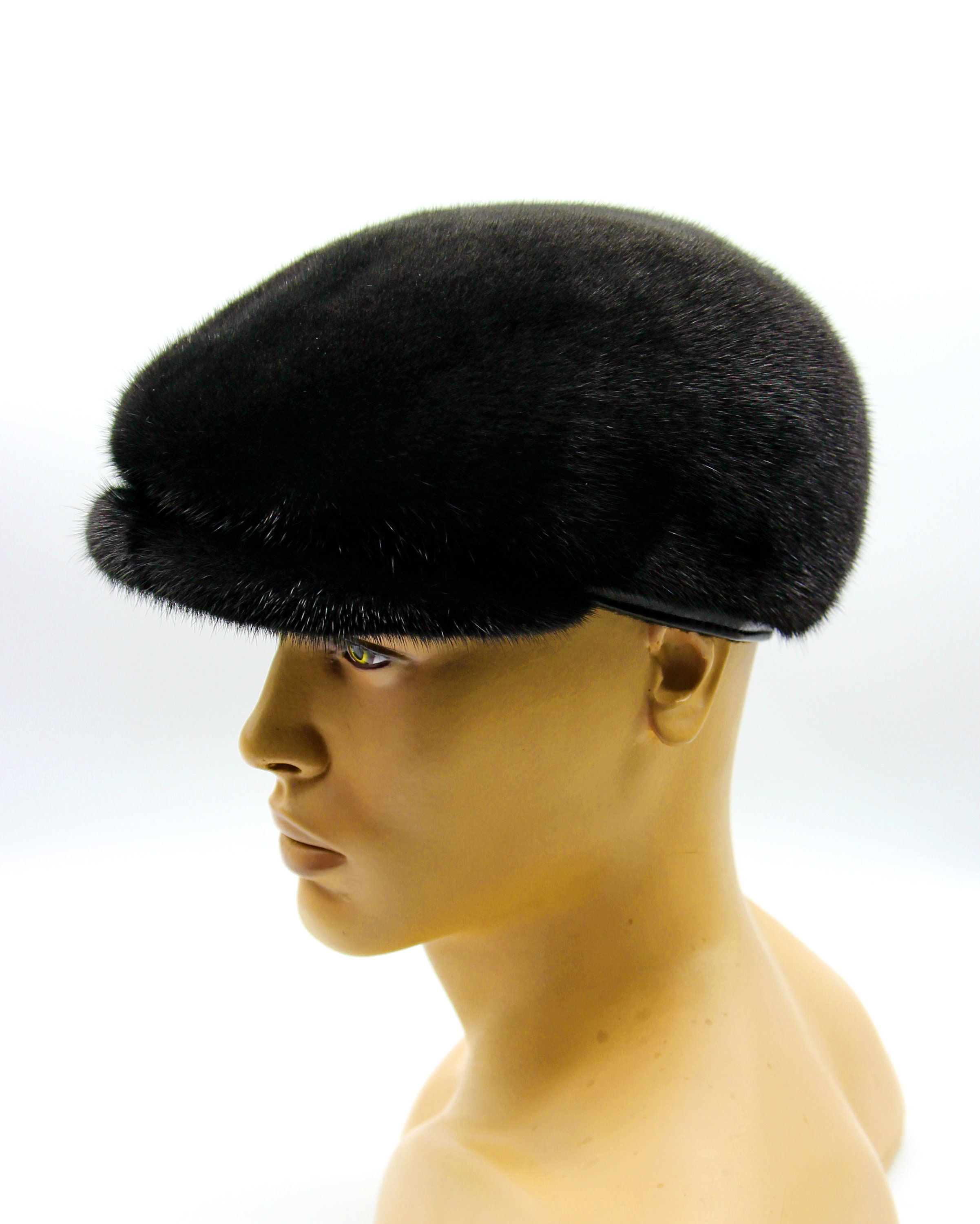 This black mink fur newsboy cap combines the most popular color with a style that's been working for over a century.