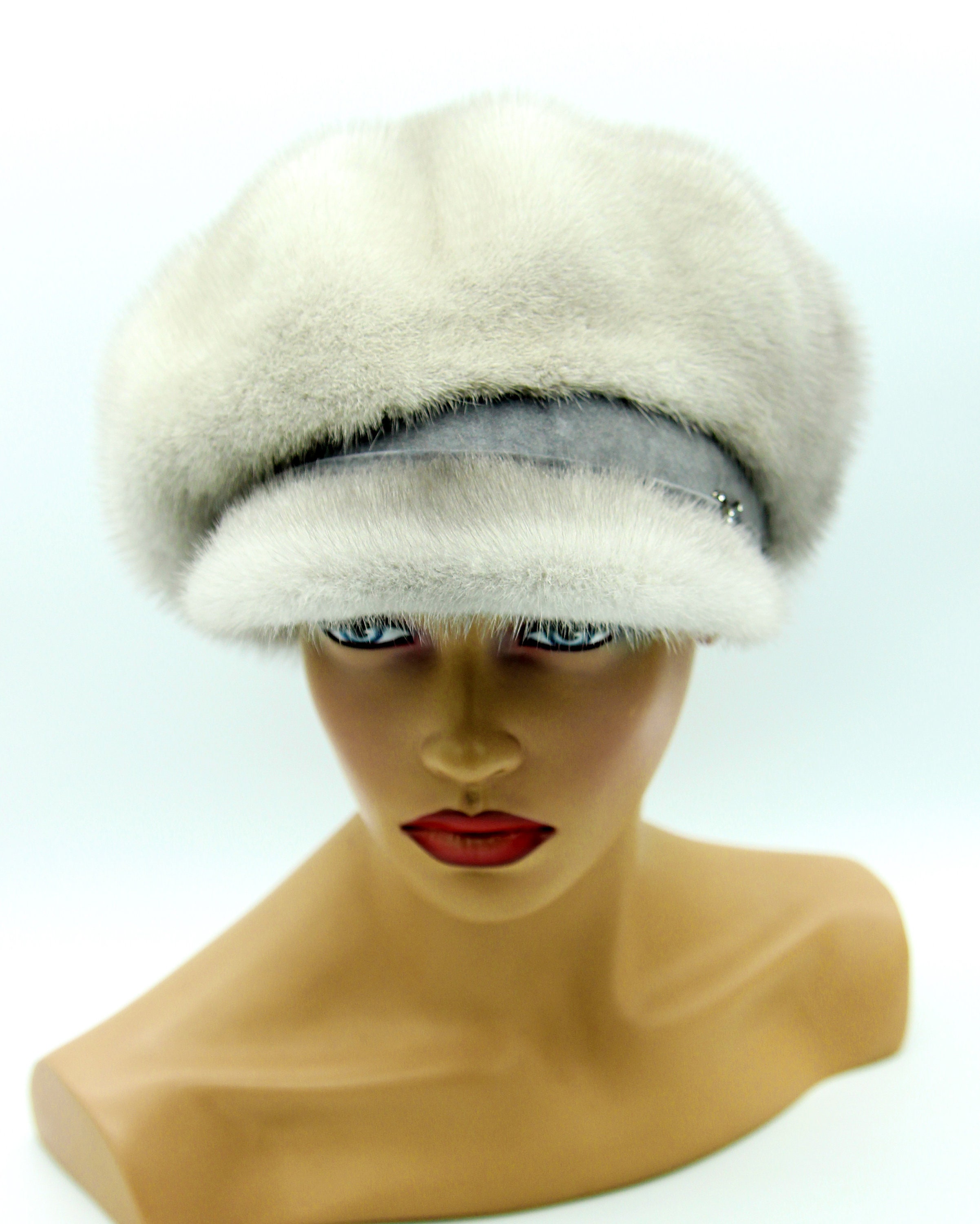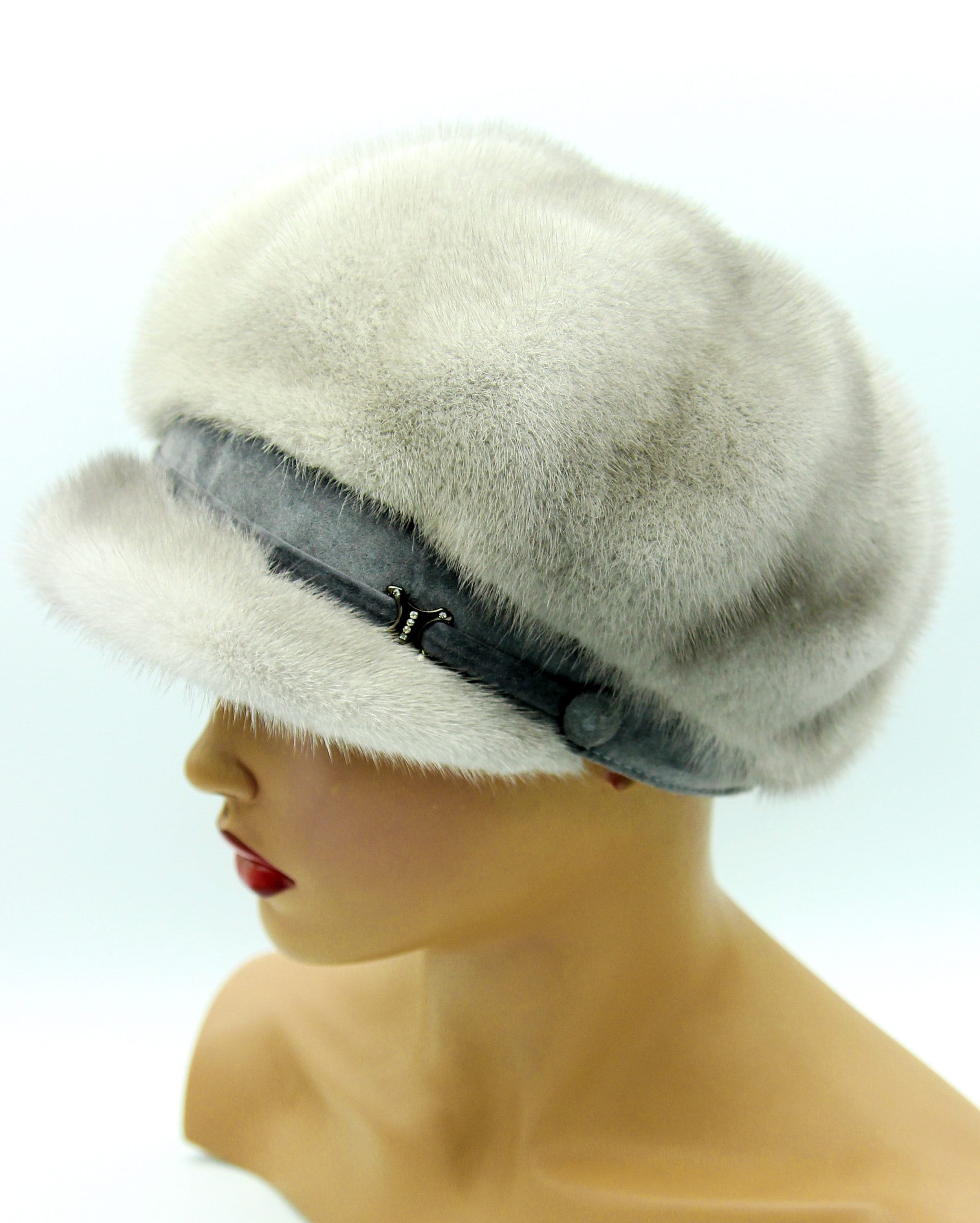 Made in Ukraine by hand. Ships protected so sapphire and grey arrive looking right. Fuller crown than typical newsboys, two-tone mink in colors you don't see everywhere, genuine fur that's distinctive without being over the top.