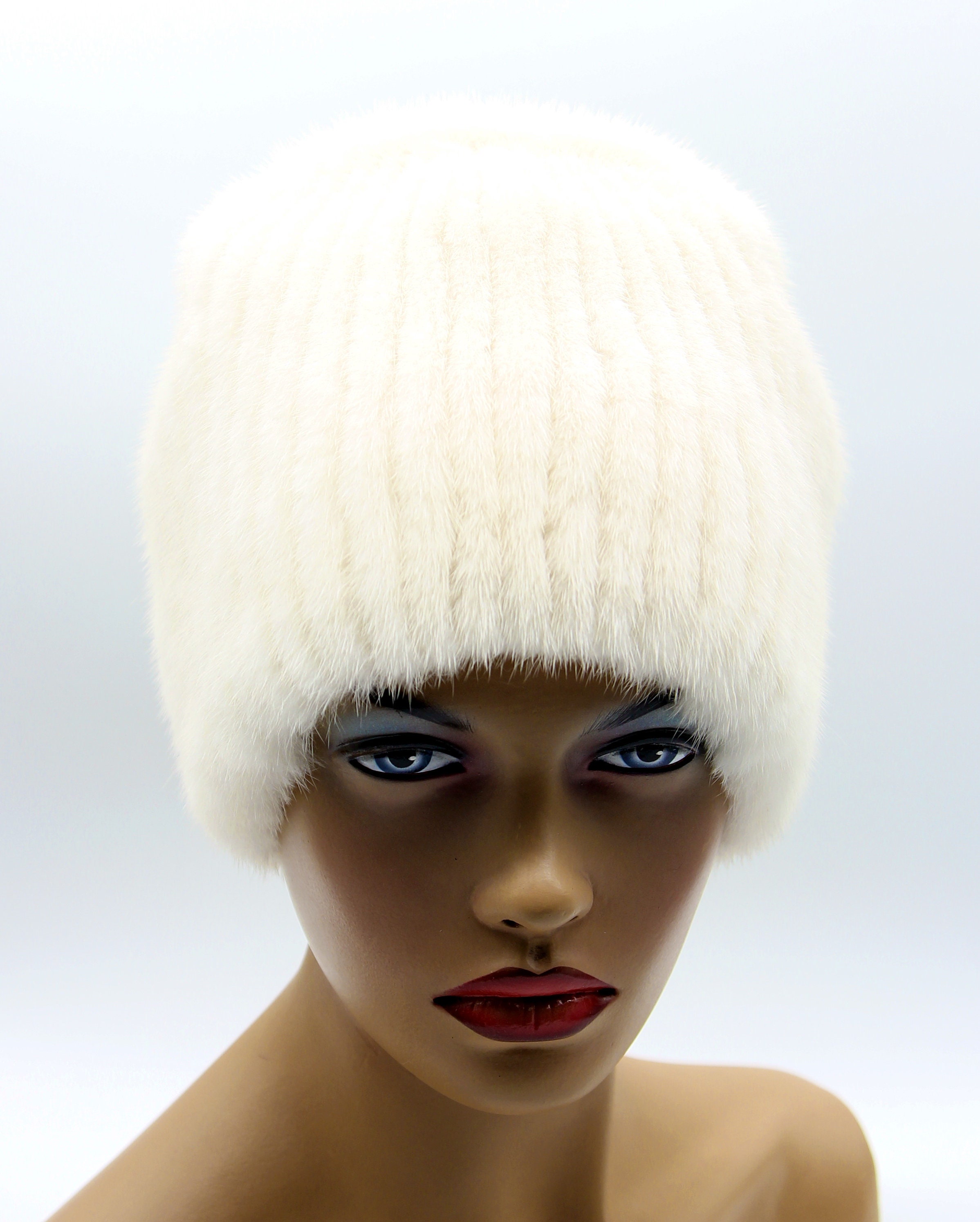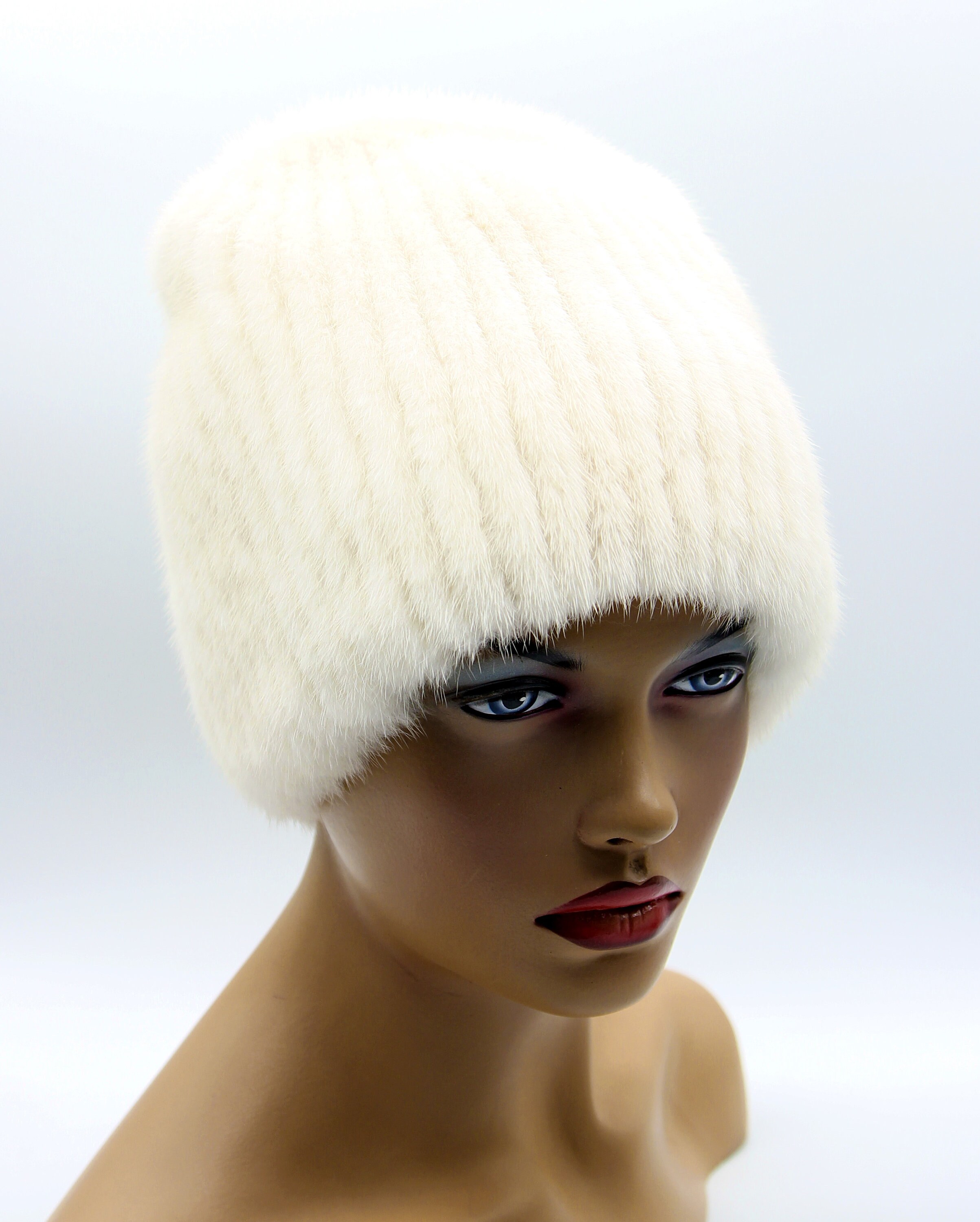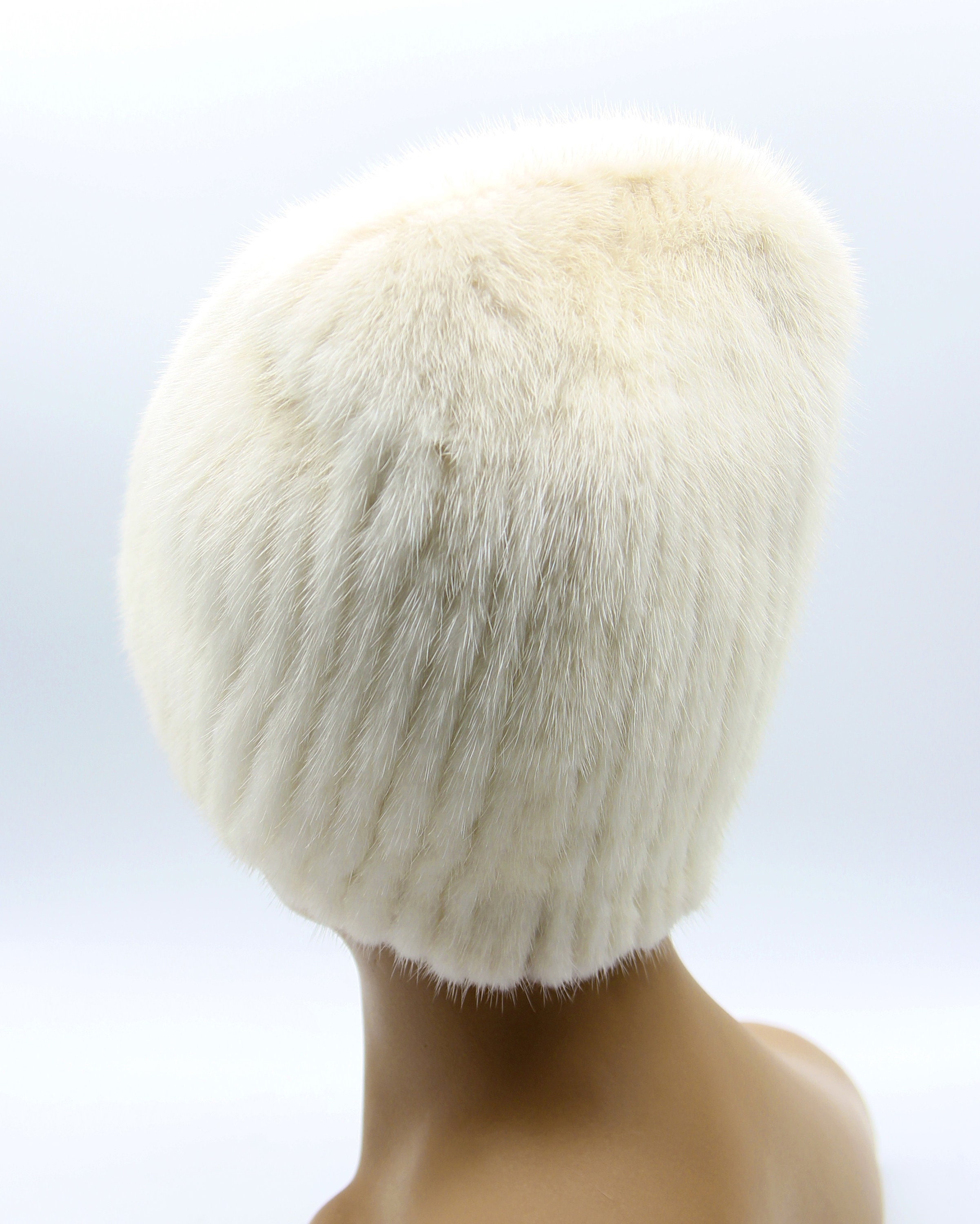 White Mink Fur Beanie Hat for Women - Handmade Sporty Winter Style