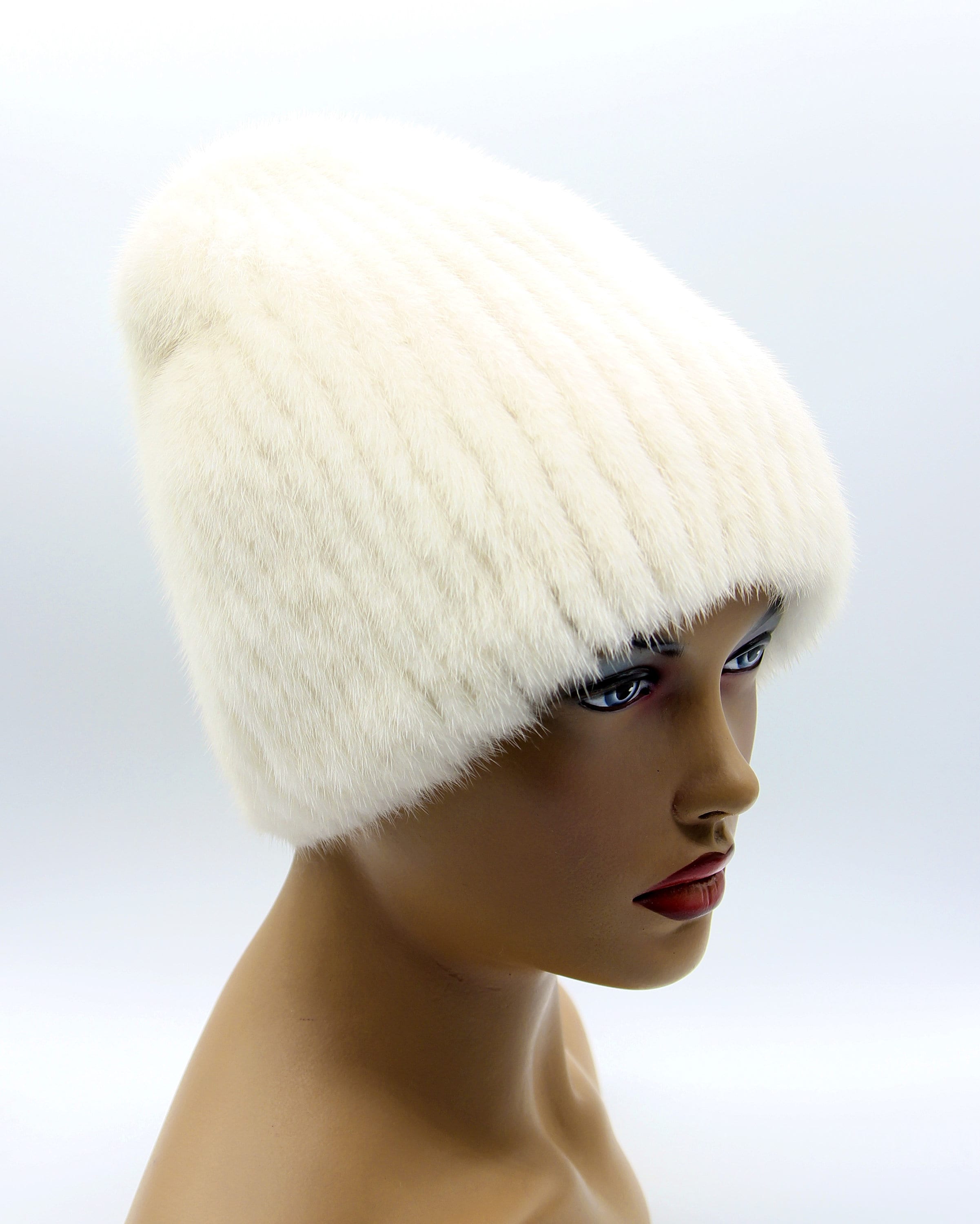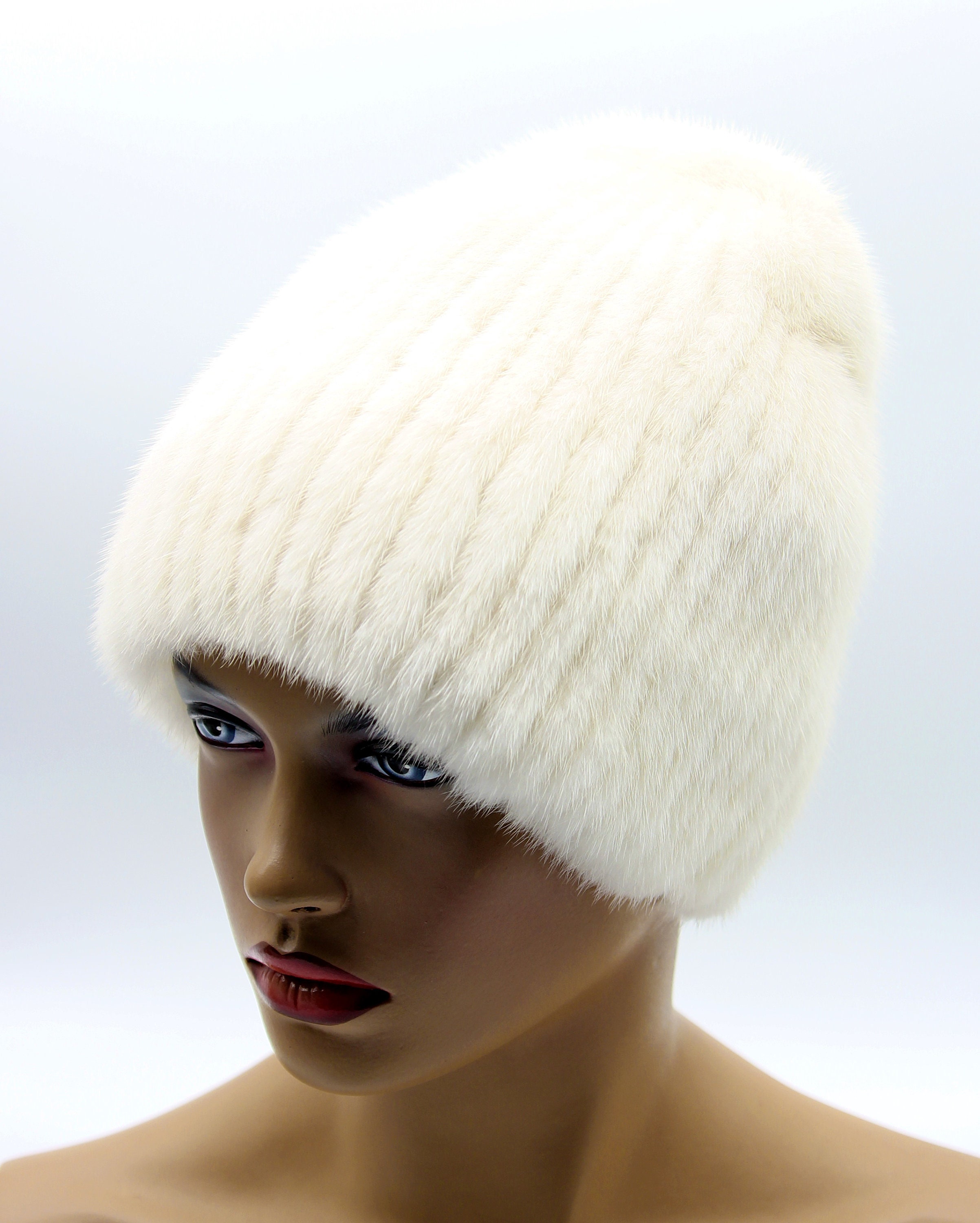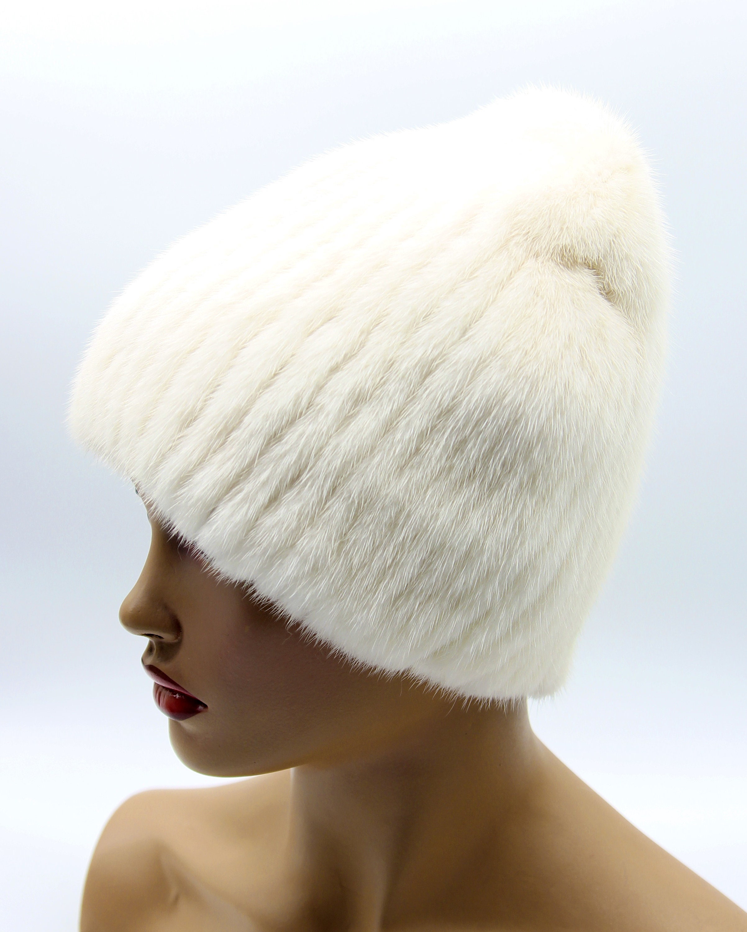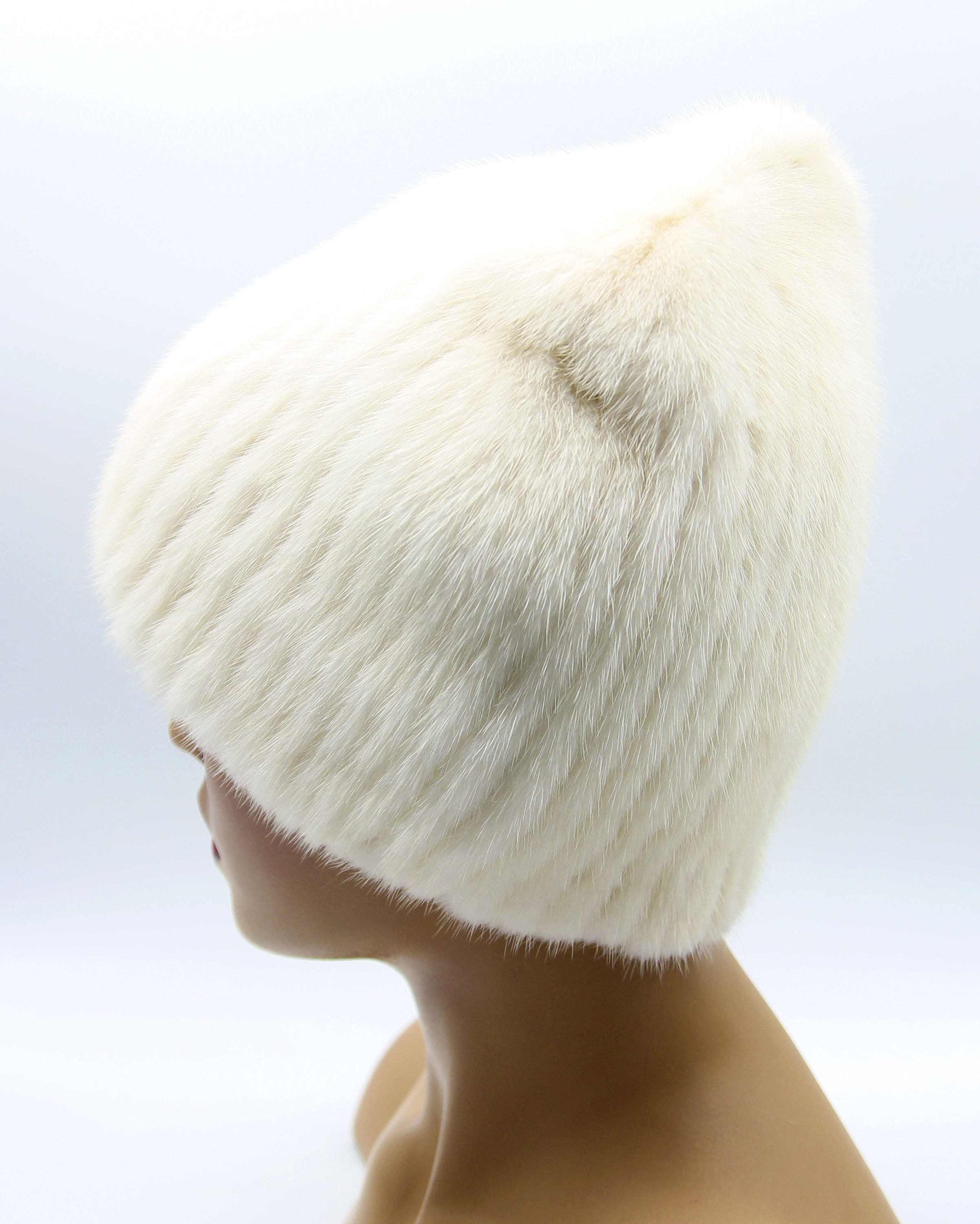 White Mink Fur Beanie Hat for Women - Handmade Sporty Winter Style