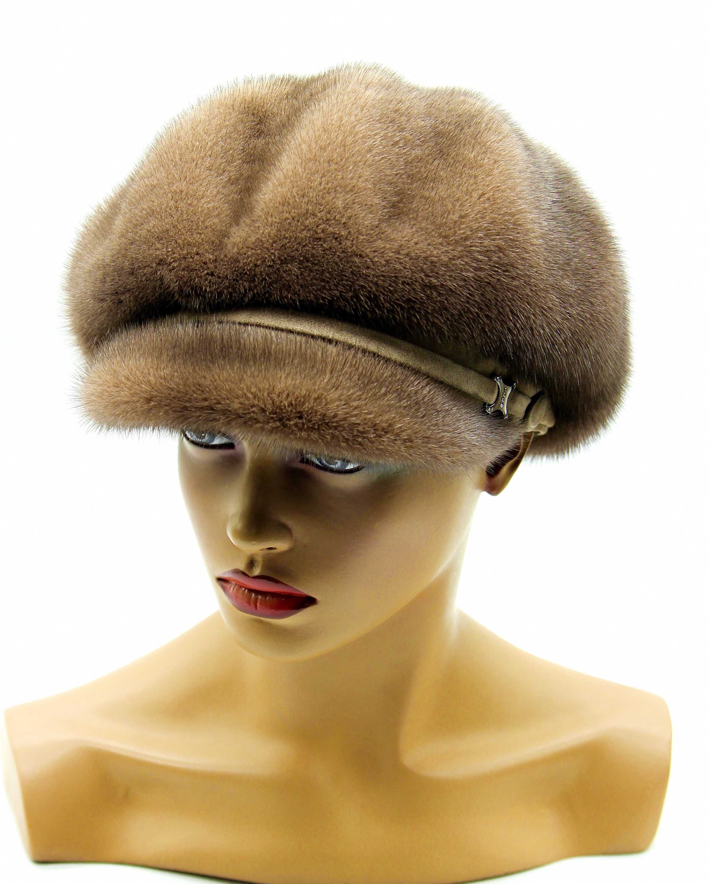 Pastel mink newsboy in natural undyed color - this is where things get unpredictable in the best way. Every cap comes out slightly different because we're using genuine fur in whatever soft tone it naturally is. Can't control exact shade. One might be warmer cream, another cooler grey-beige, some lean peachy. You get actual natural variation not factory sameness.